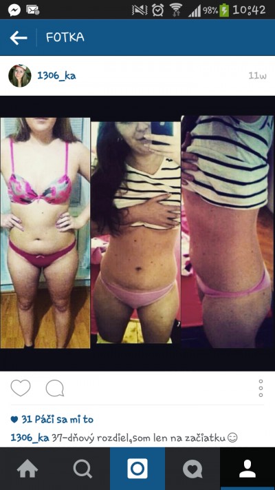 No nie vždy to tak bolo. Hovorila som si zase, ale čo do čerta mám ešte robiť, kde robím chybu? To čo som videla ráno v zrkadle bolo stále rovnaké. No bol to len môj pocit, keďže sa na seba pozerám deň čo deň. Znova som chytila mobil a odfotila sa, že sa skúsim porovnať aké to bolo pred tým a aké je to teraz. Keď som si tie dve fotografie porovnala, oči mi len tak zasvietili a hneď som sa cítila lepšie. Samozrejme bol tam viditeľný rozdiel. Na tejto fotke je rozdiel 37 dní. Sama som ostala v šoku. Len ma to utvrdilo v tom, že robím správne kroky. Nemám dôvod vzdať to!